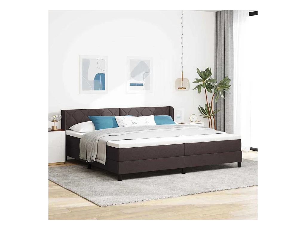 Cadre de lit avec matelas Marron foncé 200 x 200 cm tissu