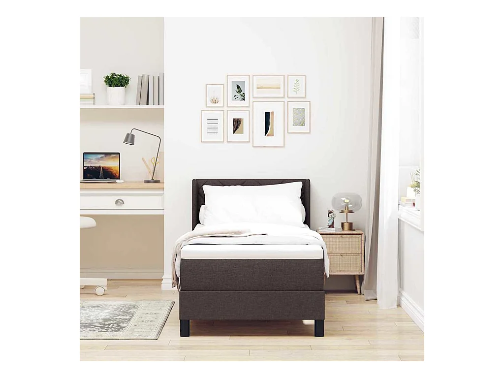 Cadre de lit avec matelas Marron foncé 80 x 200 cm tissu