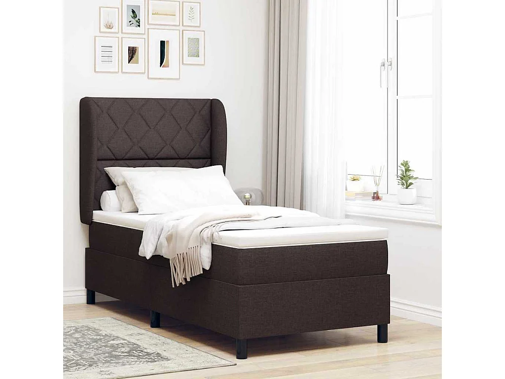 Cadre de lit avec matelas Marron foncé 90 x 190 cm tissu