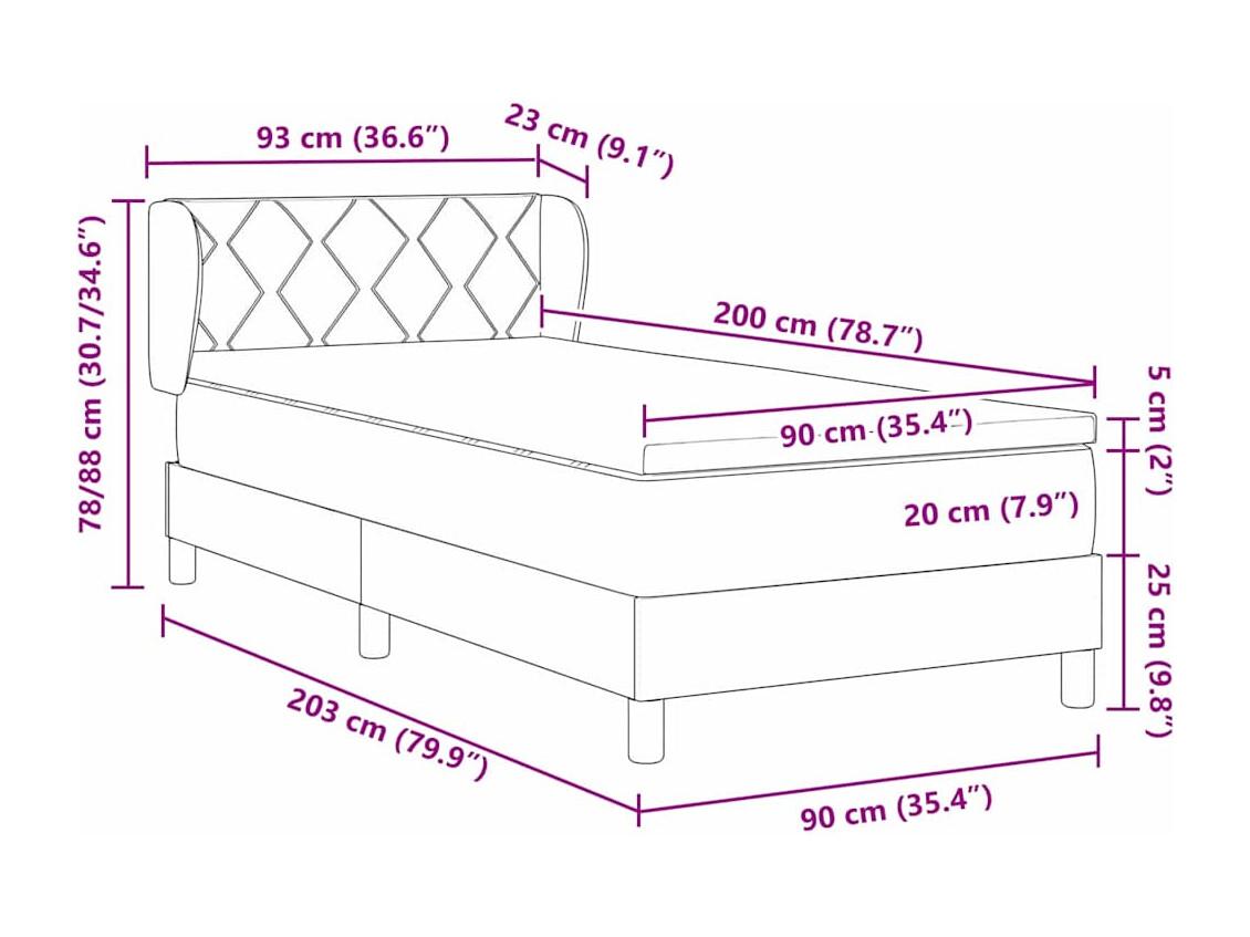 Cadre de lit avec matelas gris foncé 90x190 cm Marron foncé