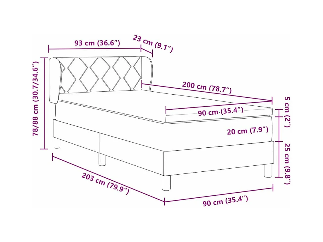 Cadre de lit avec matelas Marron foncé 90 x 200 cm tissu