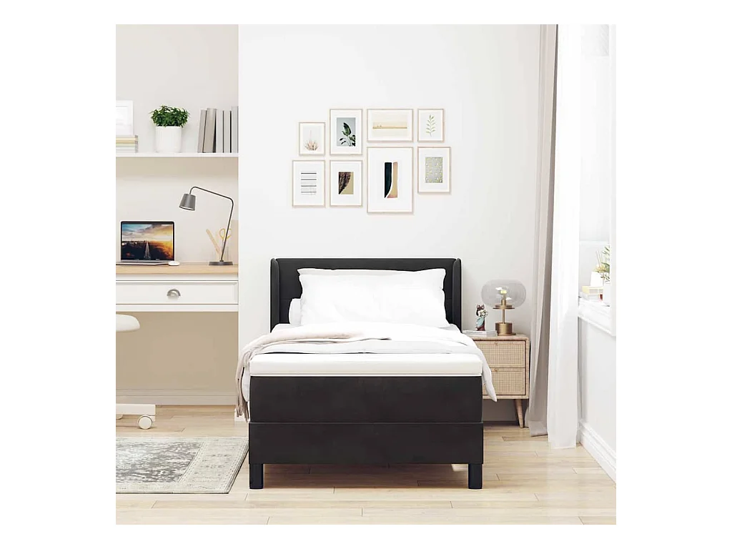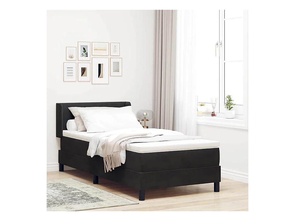 Cadre de lit avec matelas avec matelas Noir 90 x 190 cm Velours