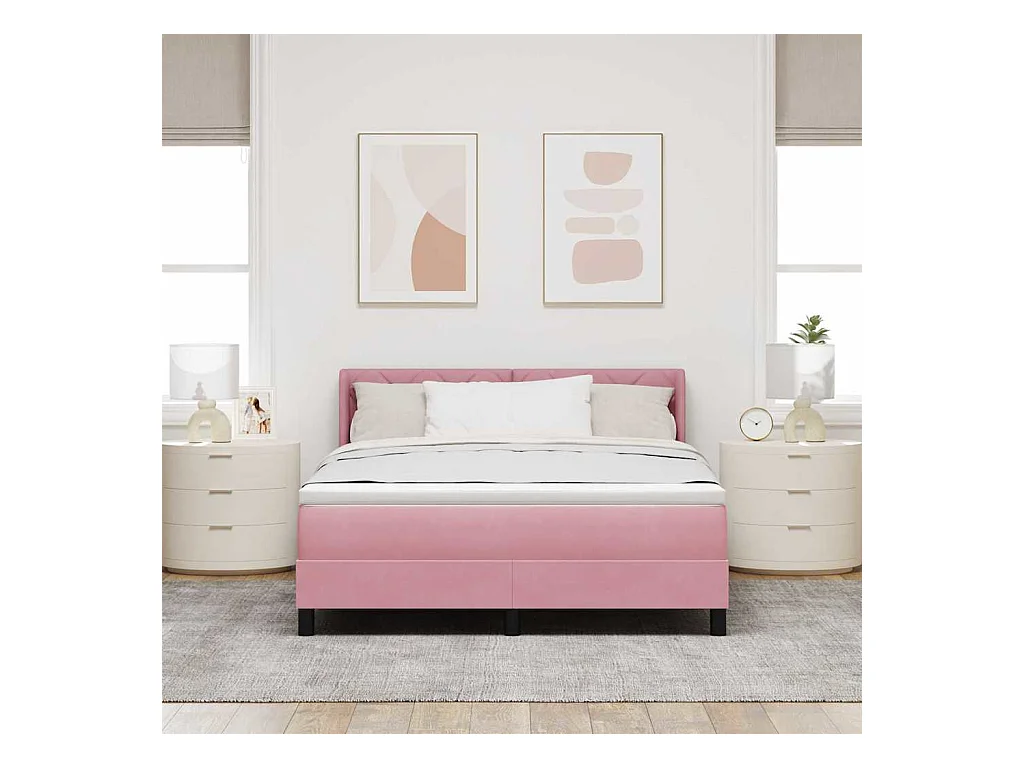 Lit avec sommier Velours AMBILLOU 160 x 200 cm Rose