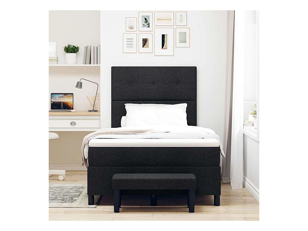 Cadre de lit avec matelas Noir 120 x 190 cm tissu