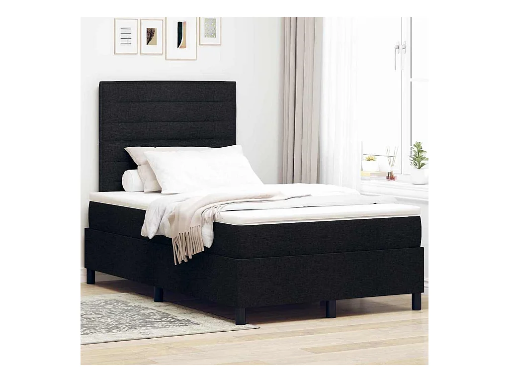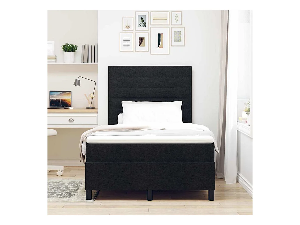 Cadre de lit avec matelas Noir 120 x 190 cm tissu