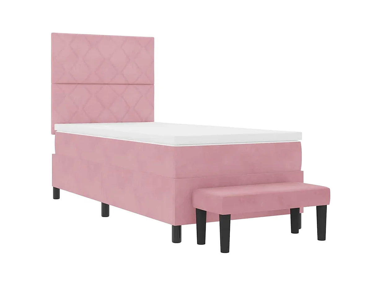 Cadre de lit ottoman avec matelas rose 100x200 cm velours