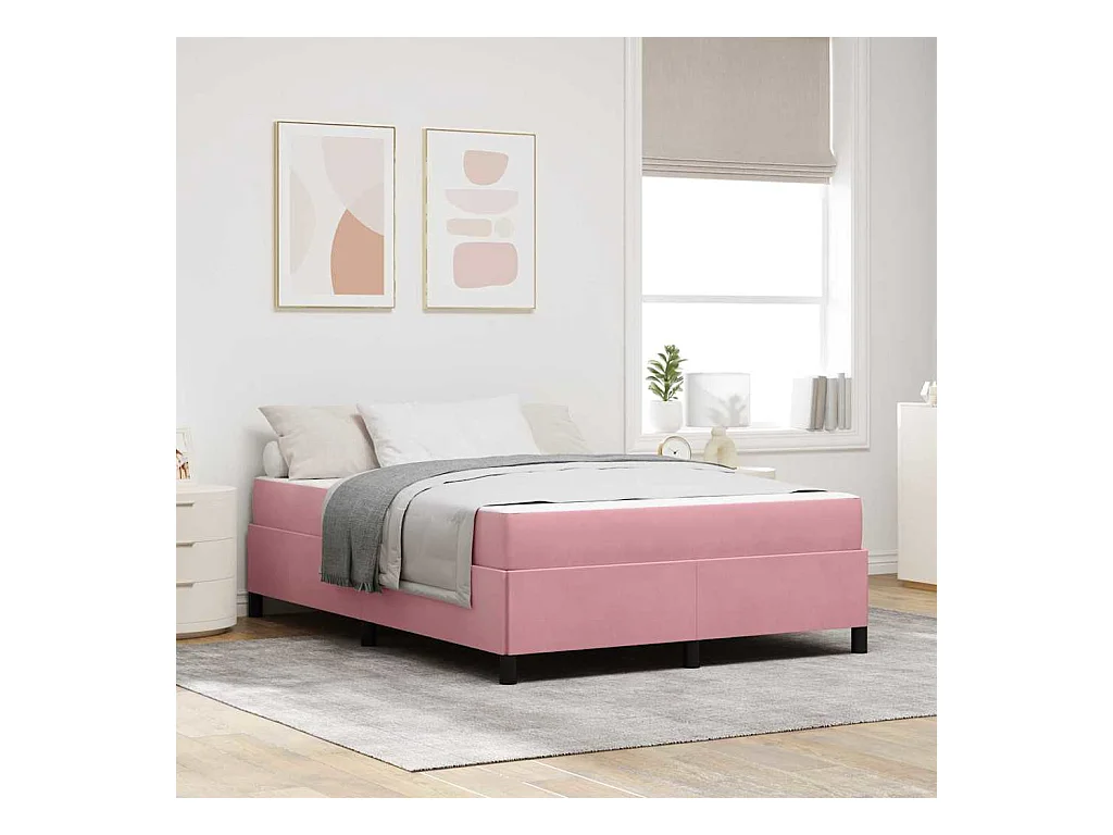 Cadre de lit avec matelas Rose et blanc 160 x 200 cm Velours
