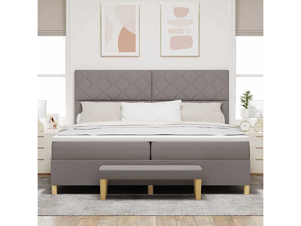 Cadre de lit ottoman avec matelas taupe 200x200 cm tissu