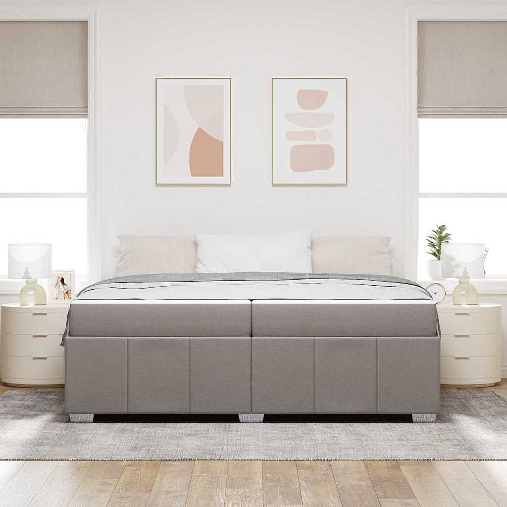 Cadre de lit avec matelas avec matelas Taupe 200 x 200 cm tissu