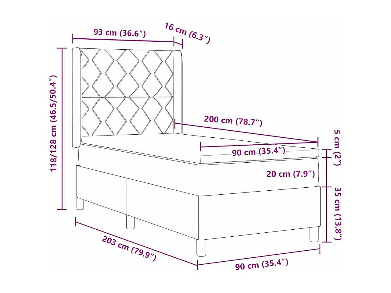 Cadre de lit avec matelas Taupe 90 x 200 cm tissu