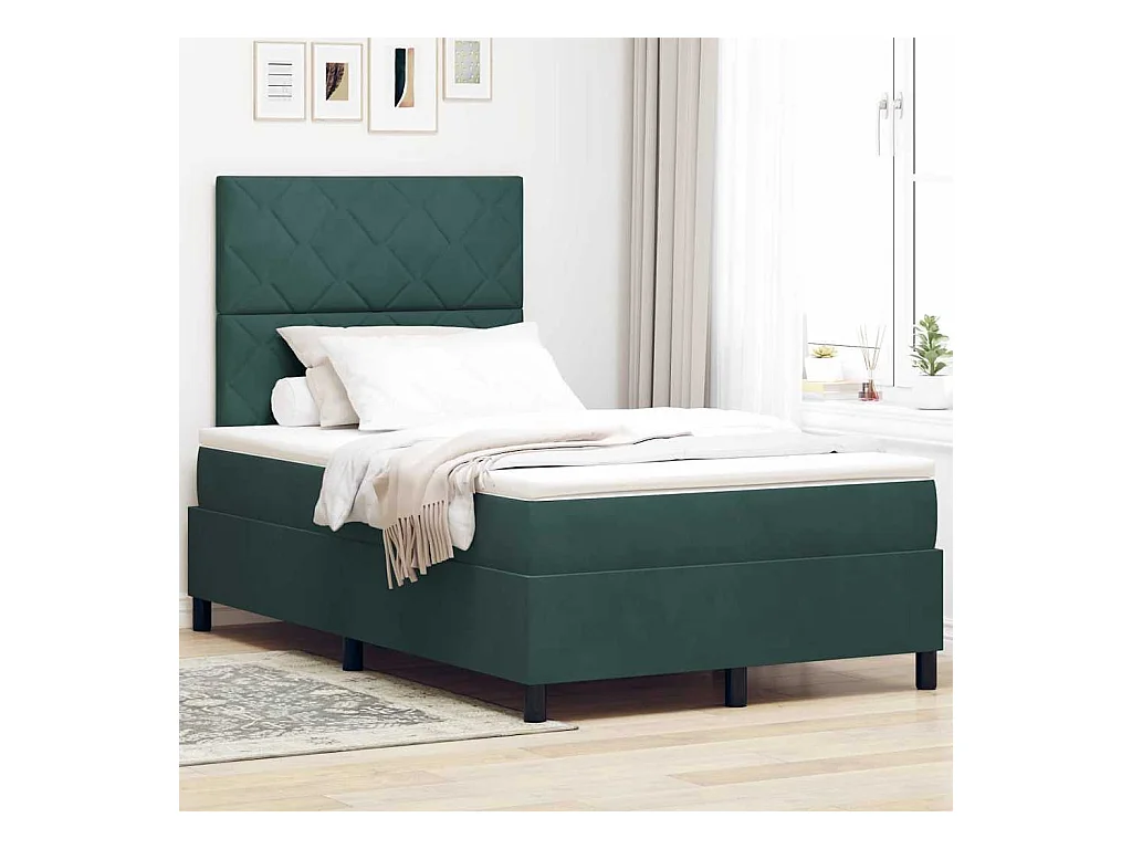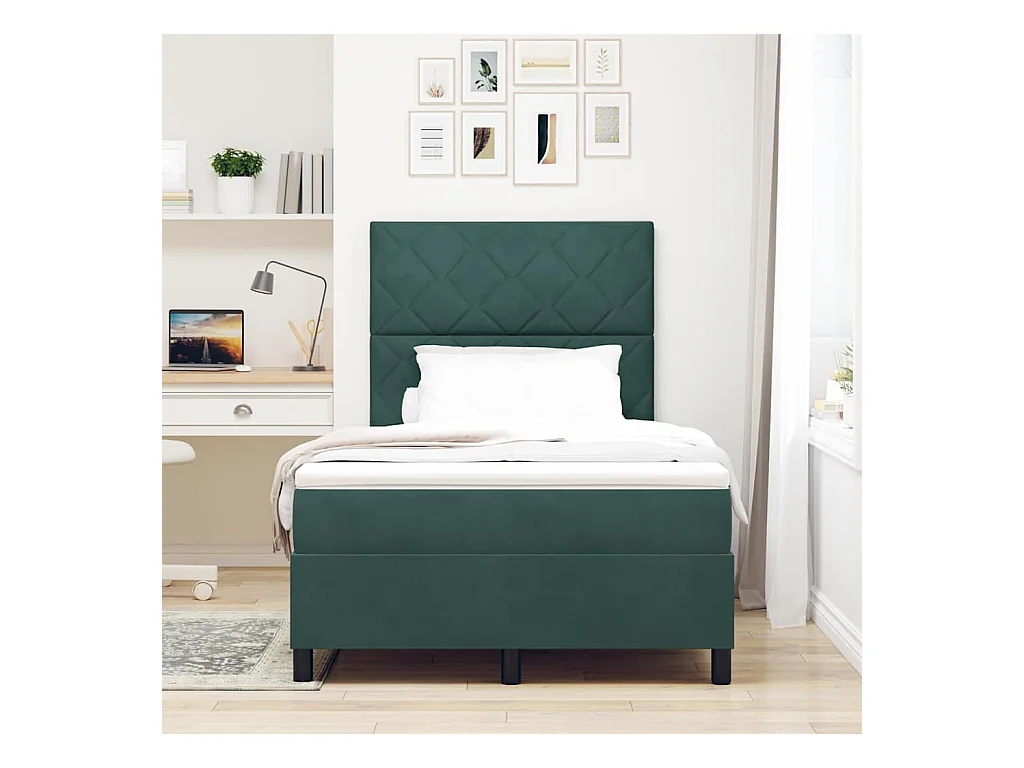 Cadre de lit avec matelas Vert foncé 120 x 190 cm Velours