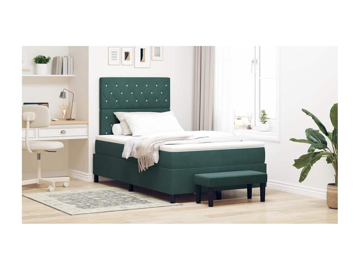Cadre de lit avec matelas Vert foncé 120 x 190 cm Velours