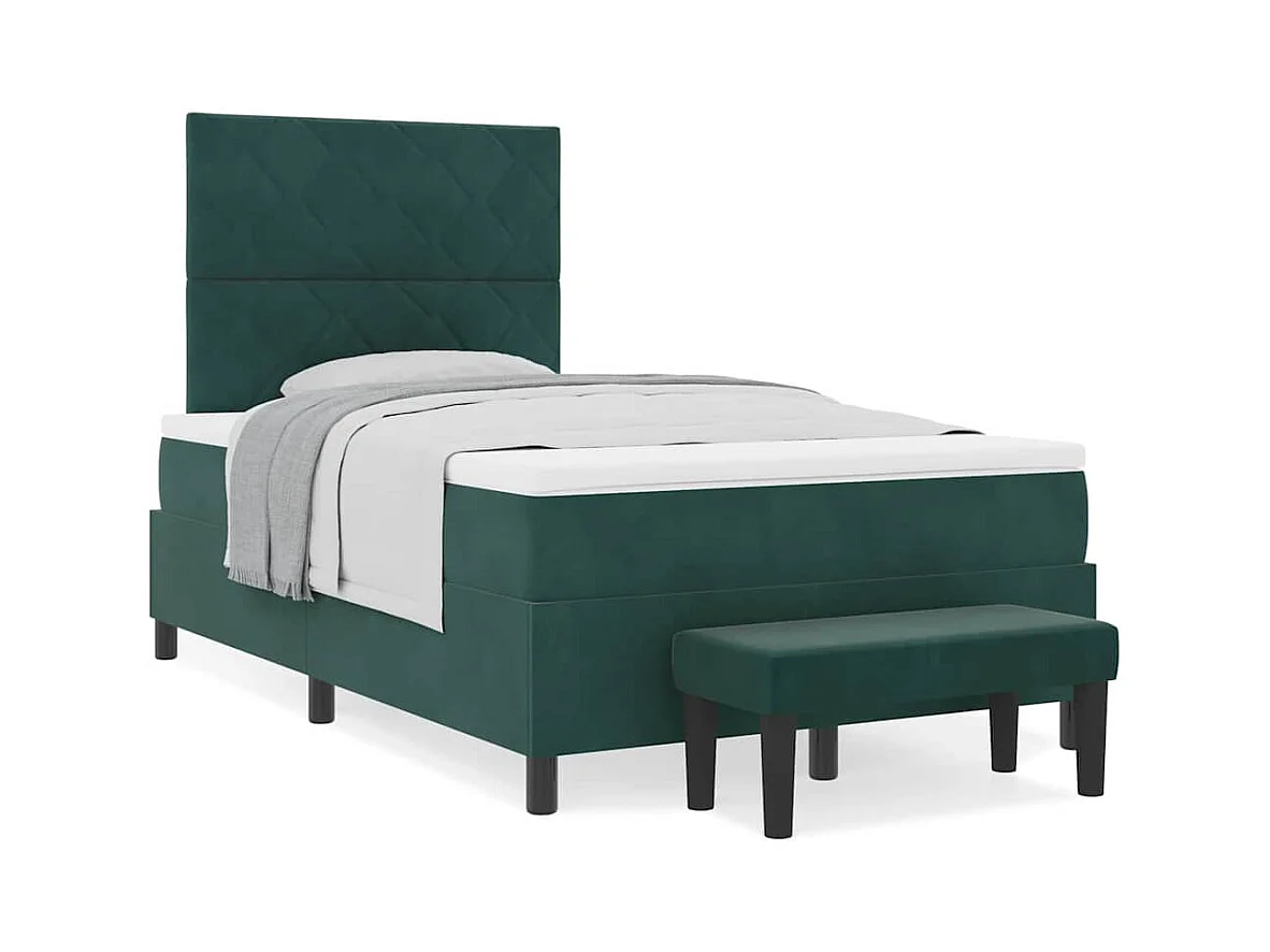Cadre de lit avec matelas Vert foncé 120 x 200 cm Velours