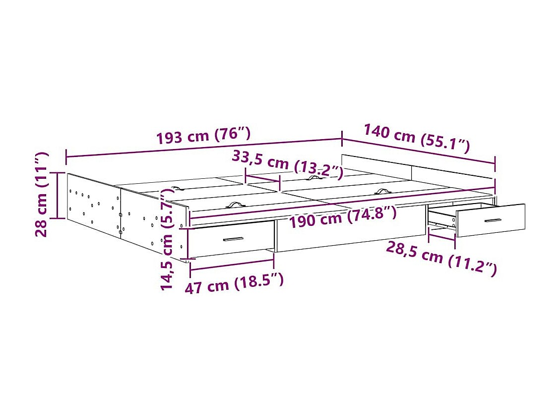 Cadre de lit avec rangement avec tête de lit Blanc 140 x 190 cm