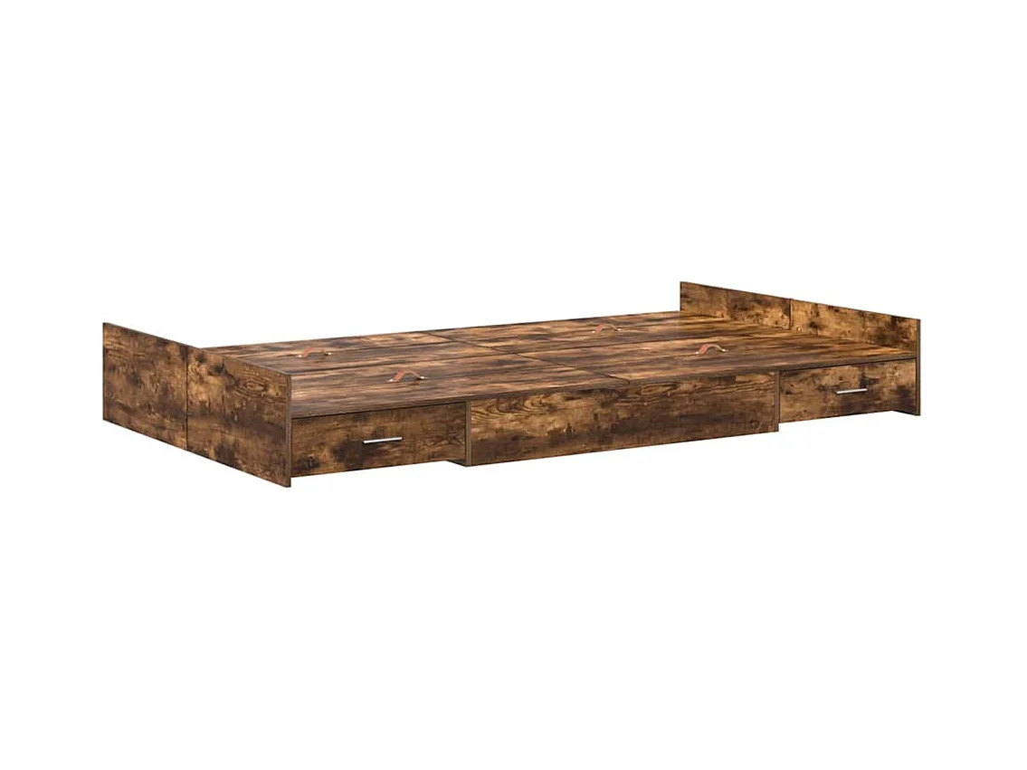 Lit double et tiroirs chêne fumé 120x190 cm bois d'ingénierie FR73062