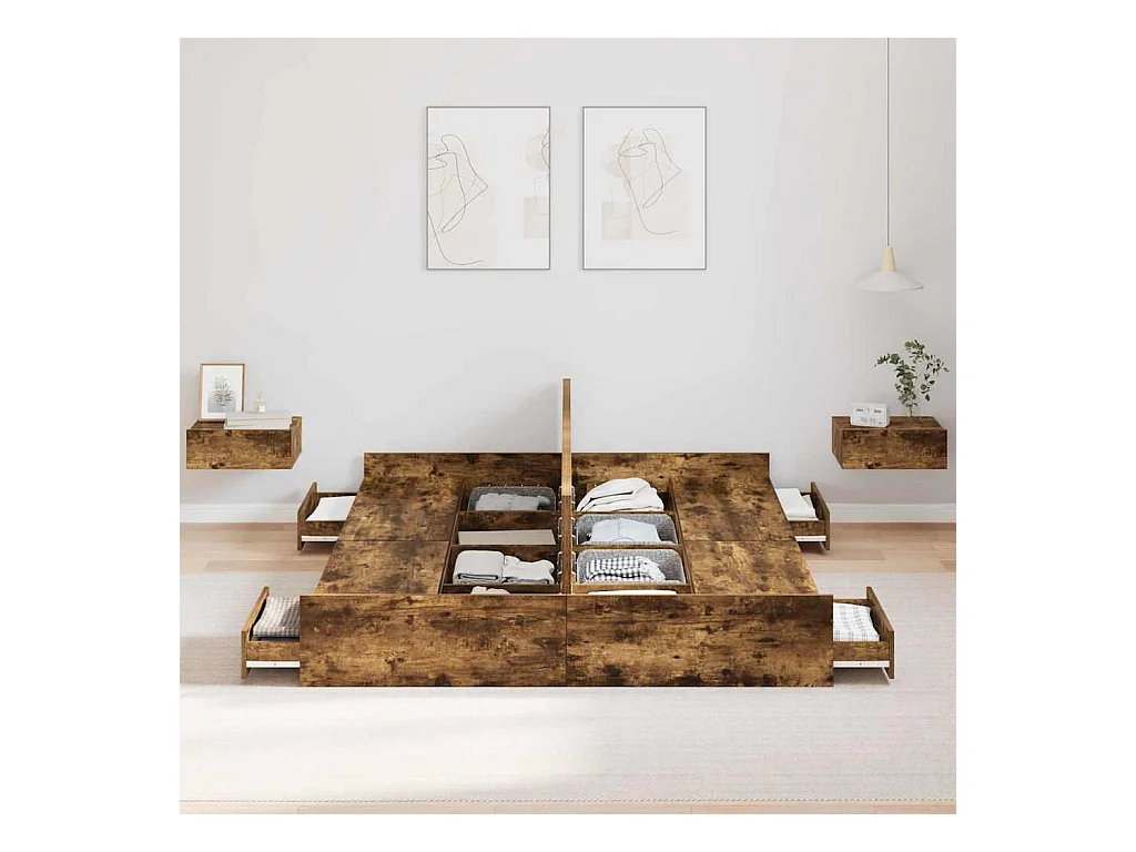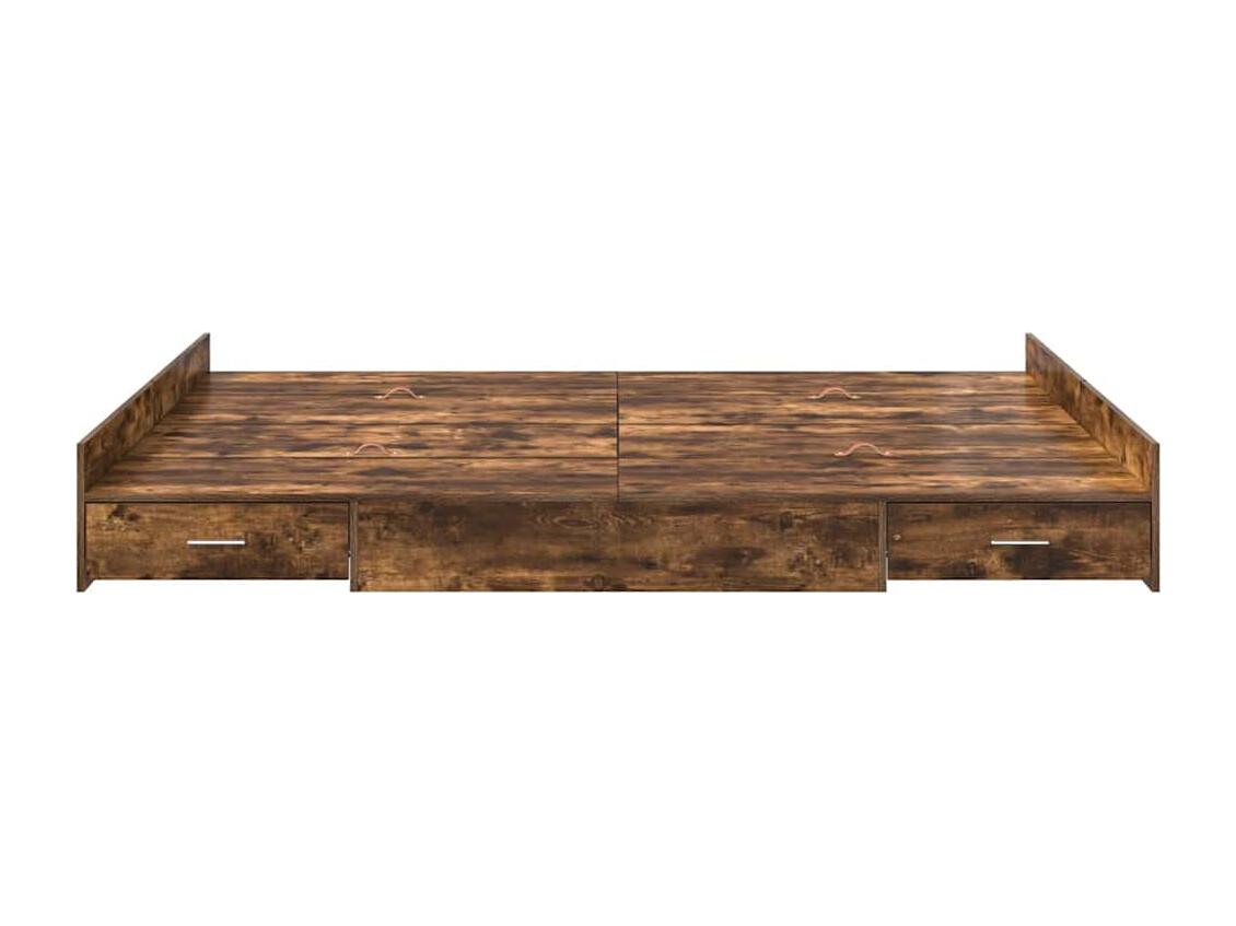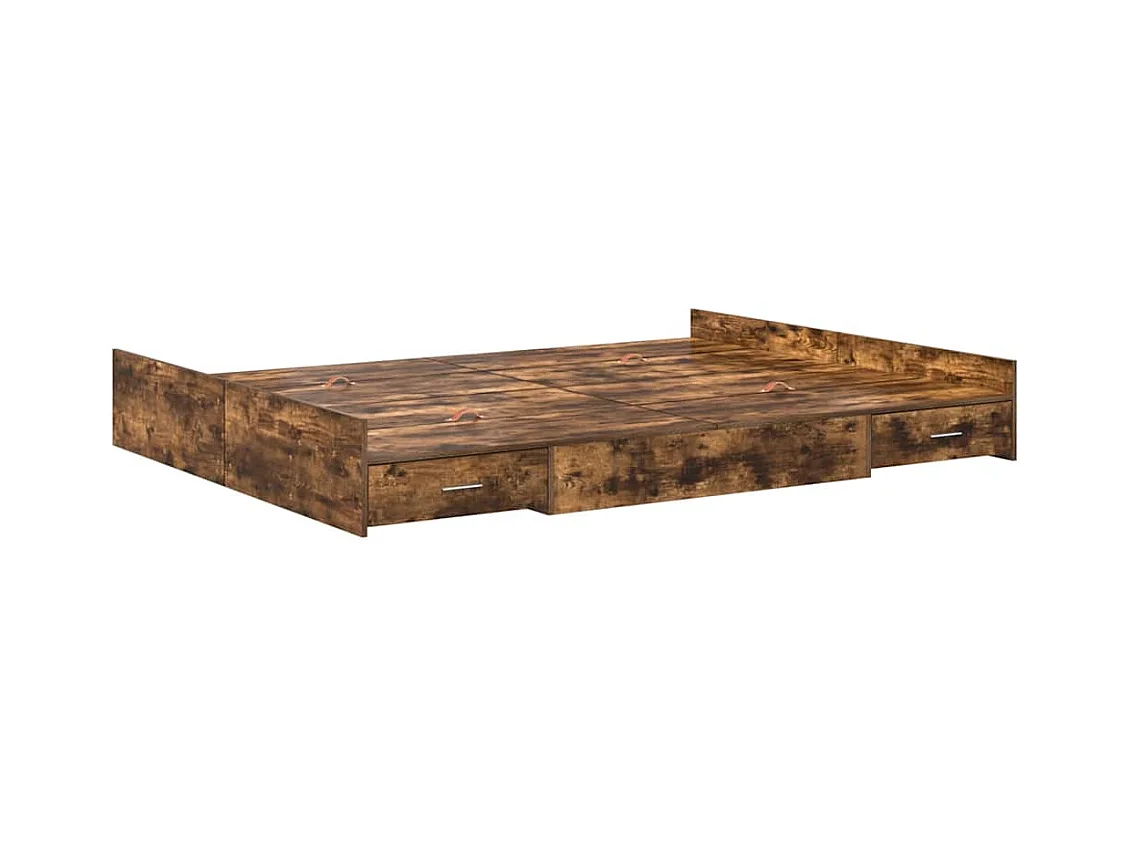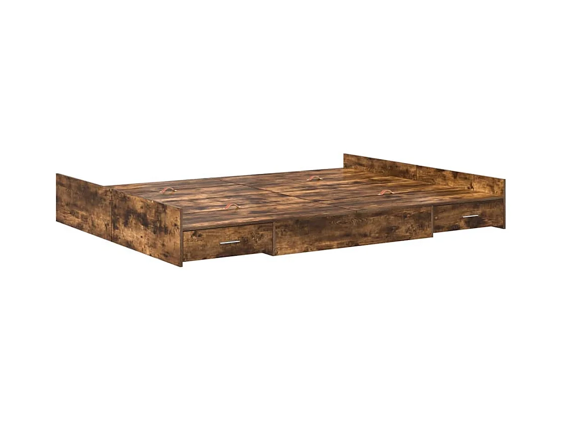 Cadre de lit avec rangement avec tiroir Chêne fumé 140 x 190 cm