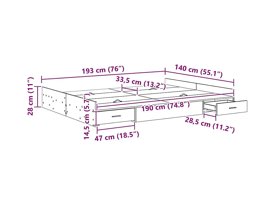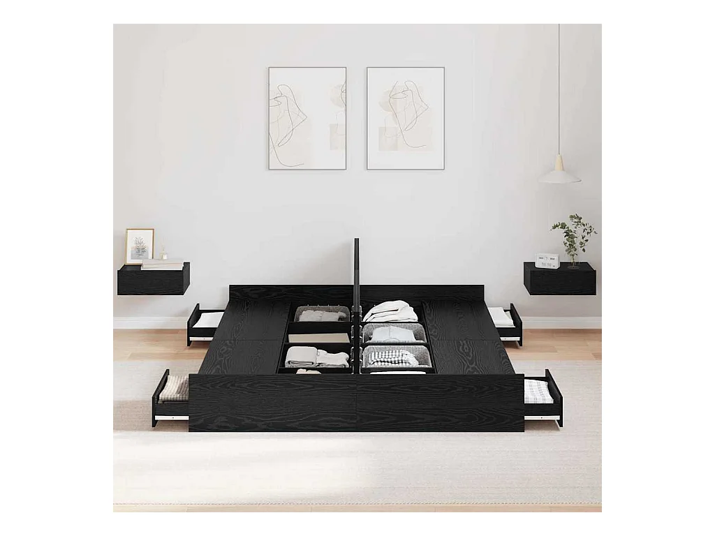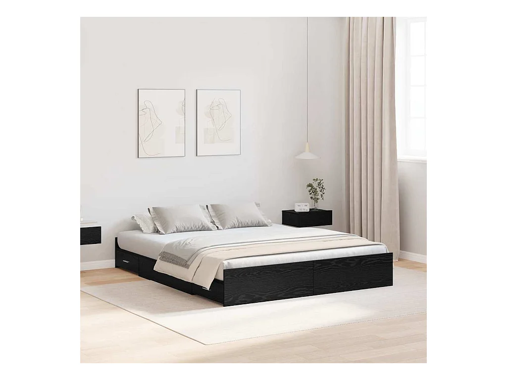 Cadre de lit avec tiroirs avec tiroir Chêne noir 140 x 190 cm