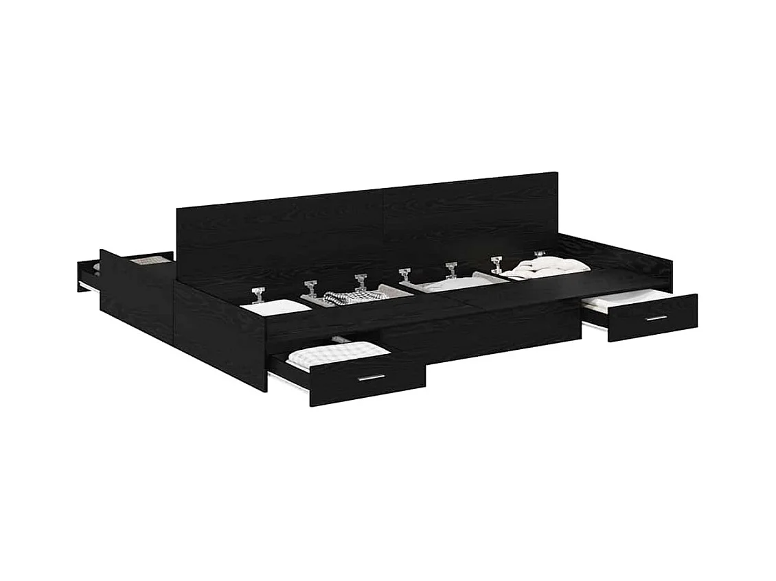 Lit double à tiroirs noir 140x190 cm bois d'ingénierie FR78797