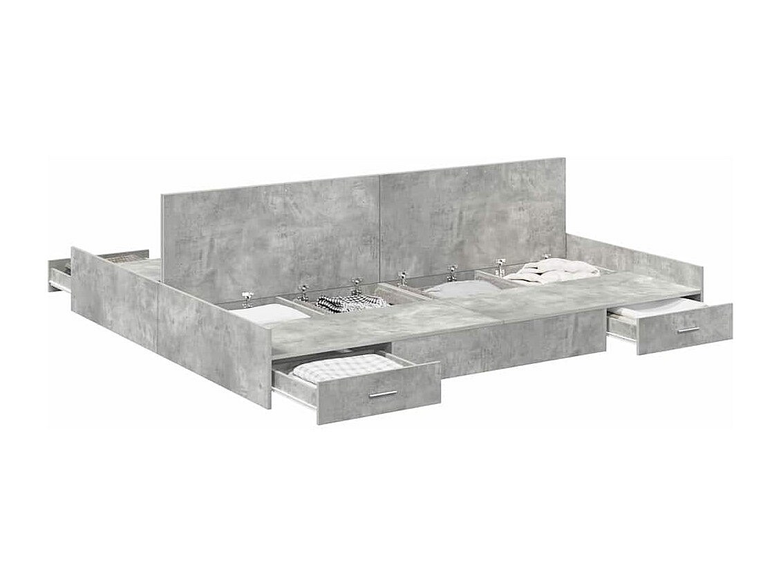 Lit double à tiroirs gris béton 180x200 cm bois d'ingénierie FR33741