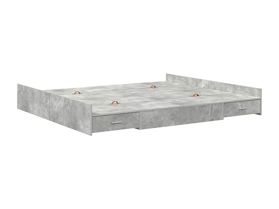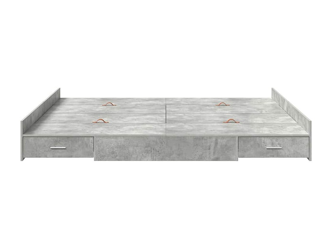 Lit double et tiroirs gris béton 200x200 cm bois d'ingénierie FR27070