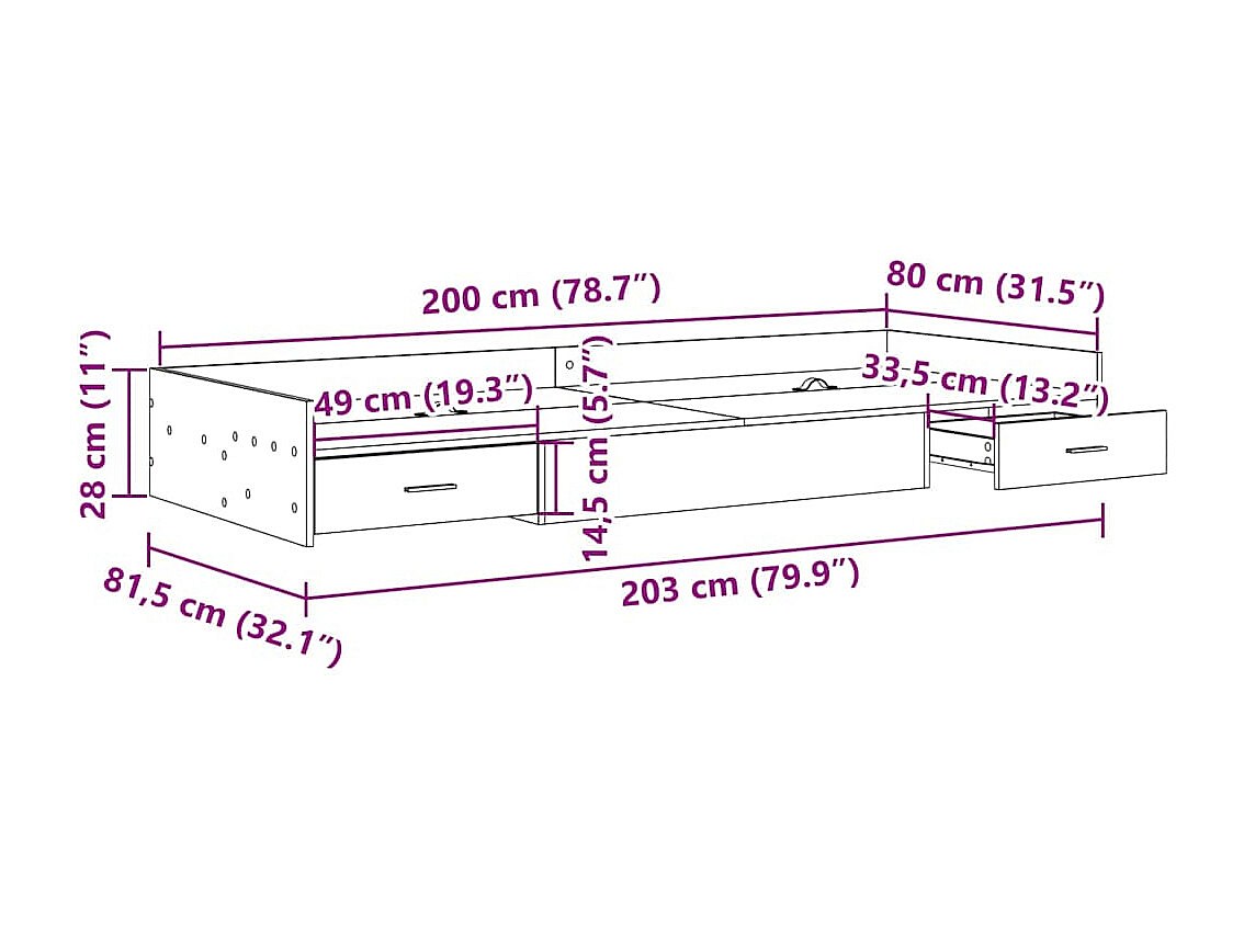 Cadre de lit avec rangement Blanc 80 x 200 cm Bois d'ingénierie