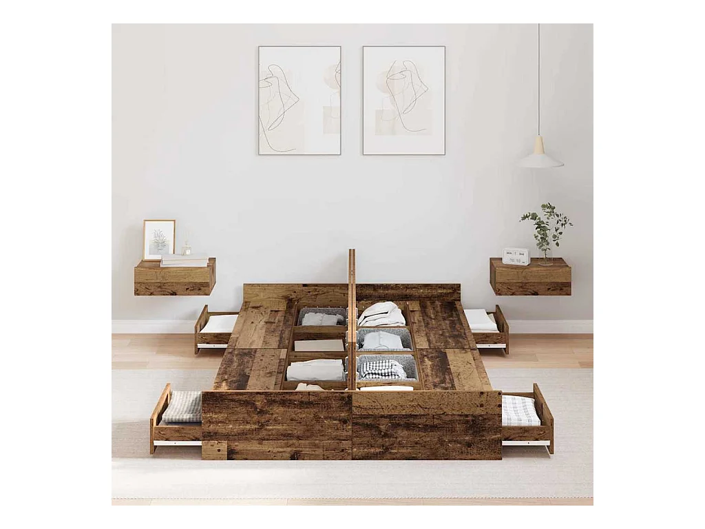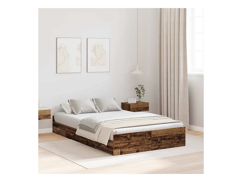 Lit double et tiroirs chêne fumé 120x200 cm bois d'ingénierie FR43146