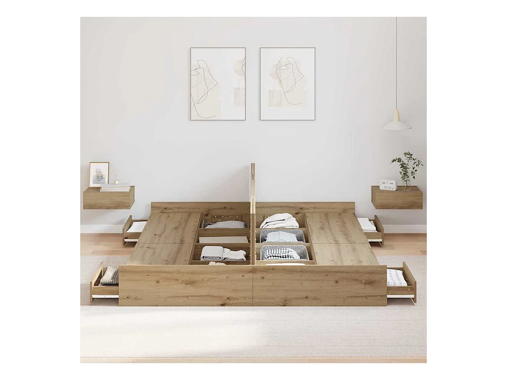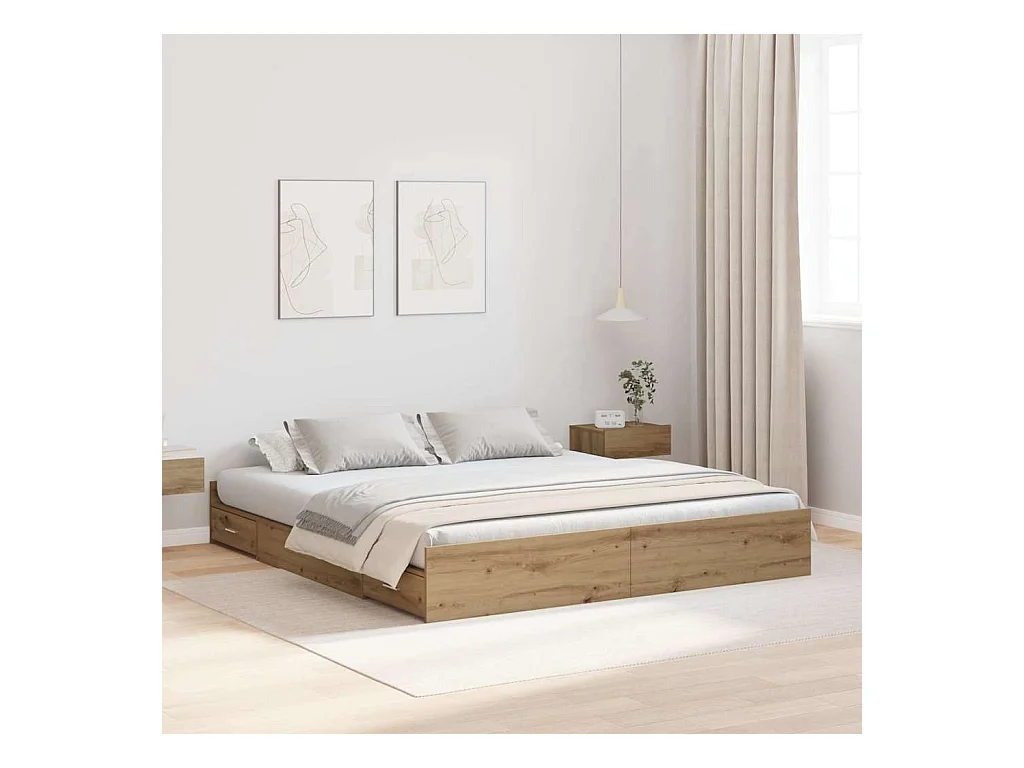 Lit double avec tiroirs chêne sonoma 200x200 cm FR11931