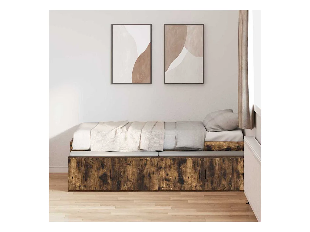 Cadre de lit avec rangement Chêne fumé 75 x 190 cm Bois d'ingénierie