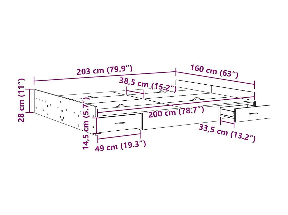 Lit double à tiroirs chêne sonoma 160x200cm bois d'ingénierie FR79104
