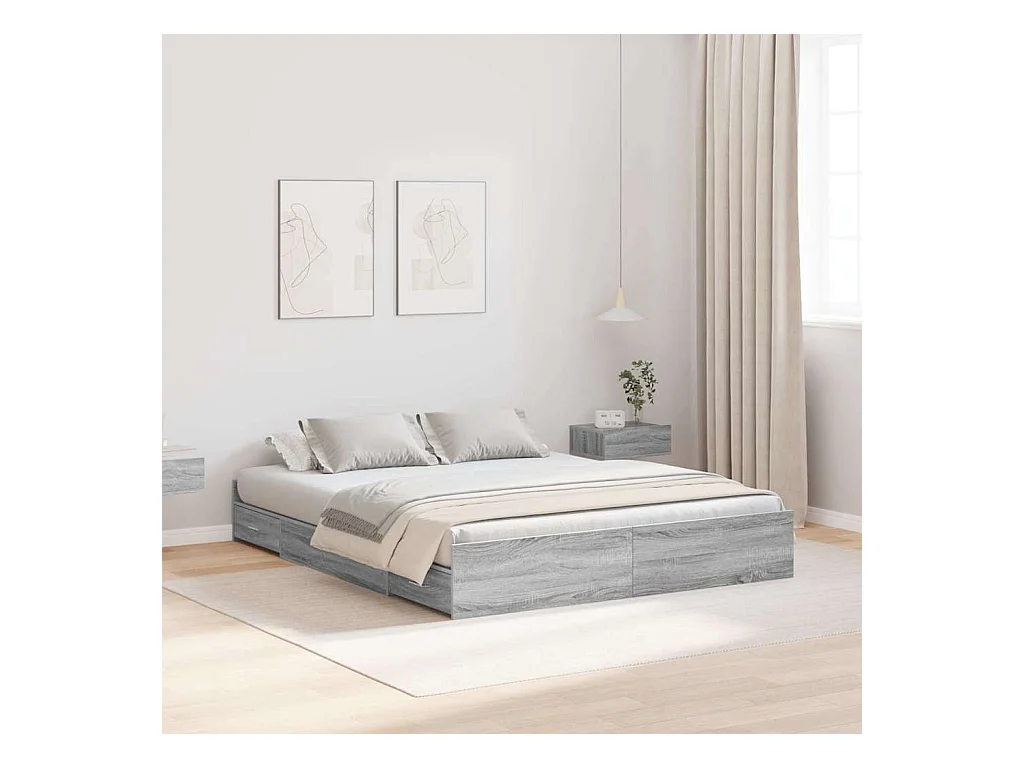Lit double à tiroirs sonoma gris 150x200 cm bois d'ingénierie FR17549