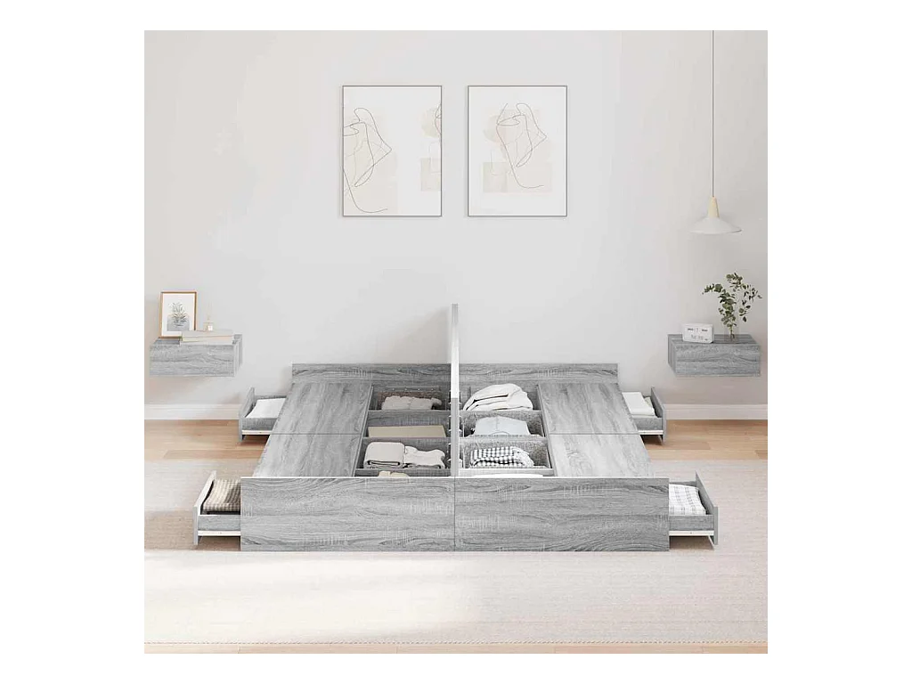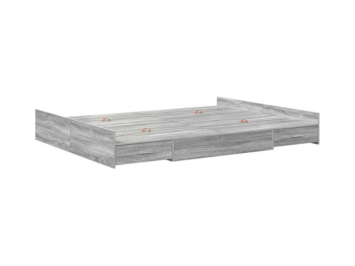 Lit double à tiroirs sonoma gris 150x200 cm bois d'ingénierie FR75899