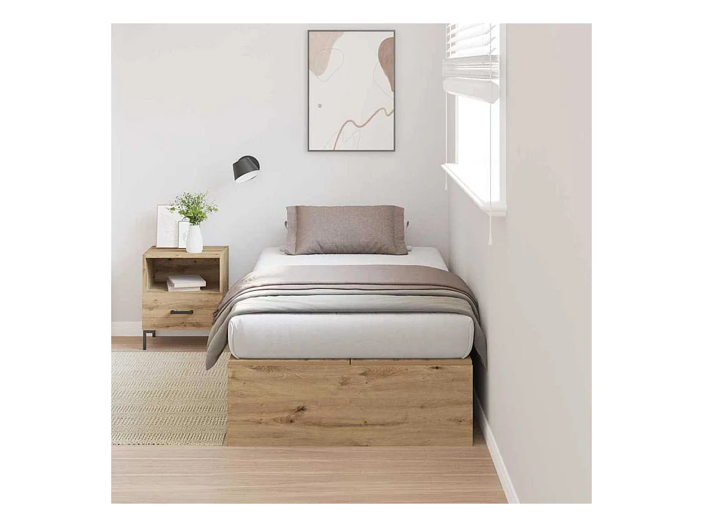 Cadre de lit chêne artisanal 90 x 190 cm Bois d'ingénierie
