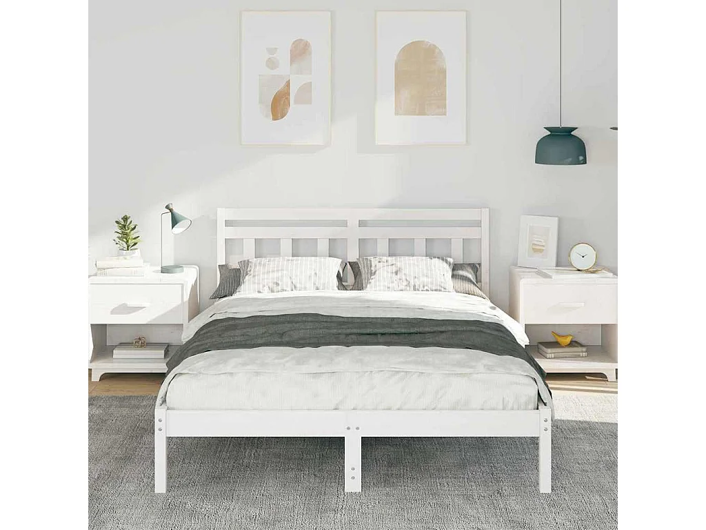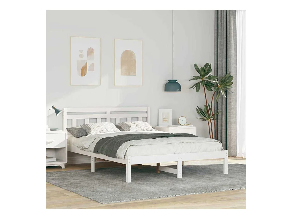 Cadre de lit avec tête de lit Blanc Bois de pin