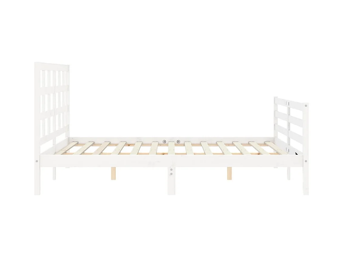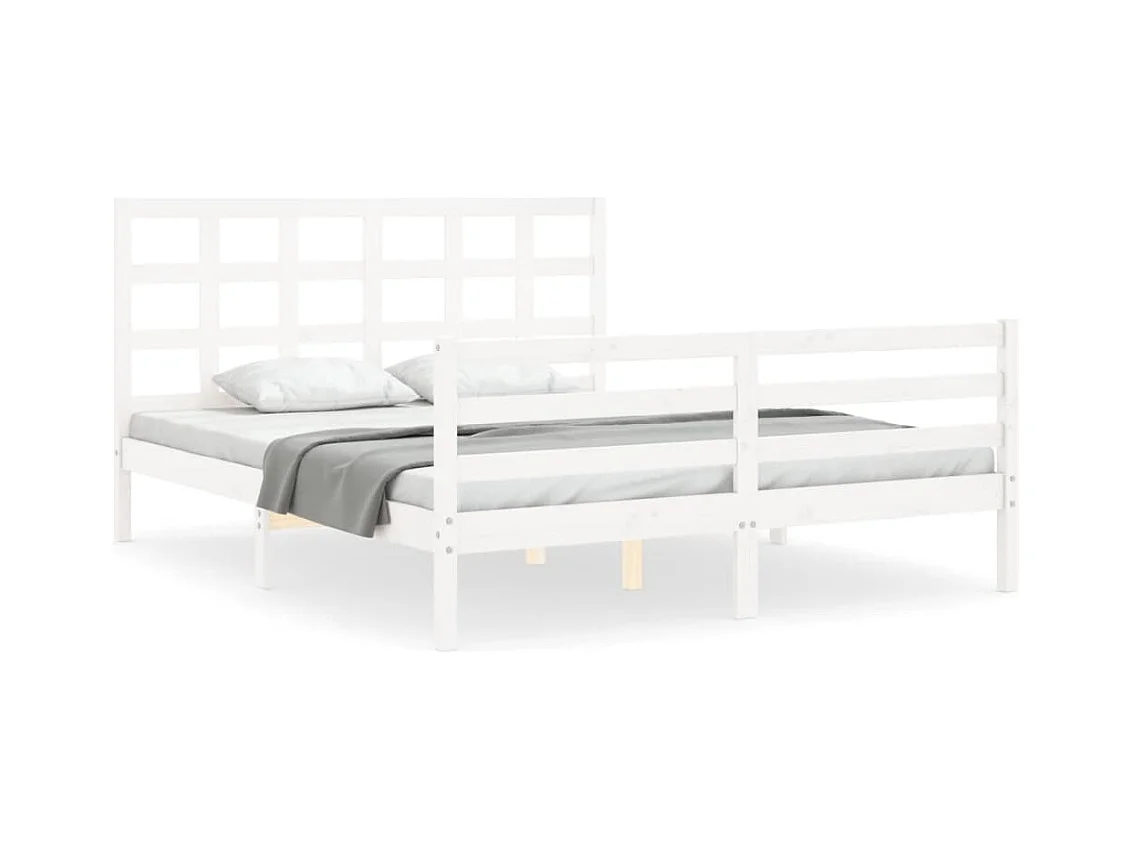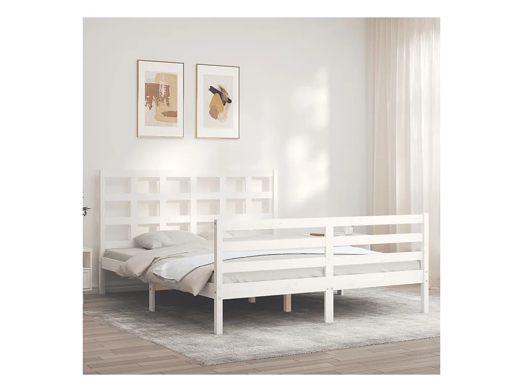Lit double + tête de lit blanc 150x200 cm bois pin massif FR20270