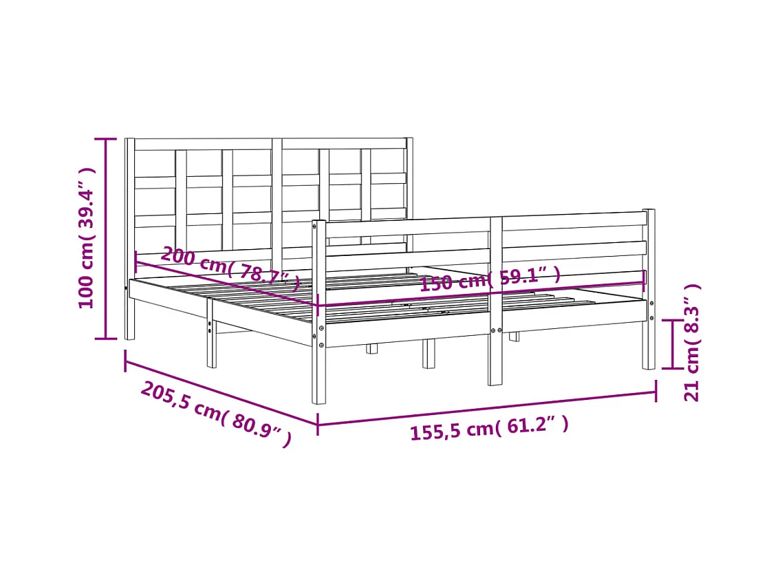 Cadre de lit sans matelas blanc 150x200 cm bois de pin massif
