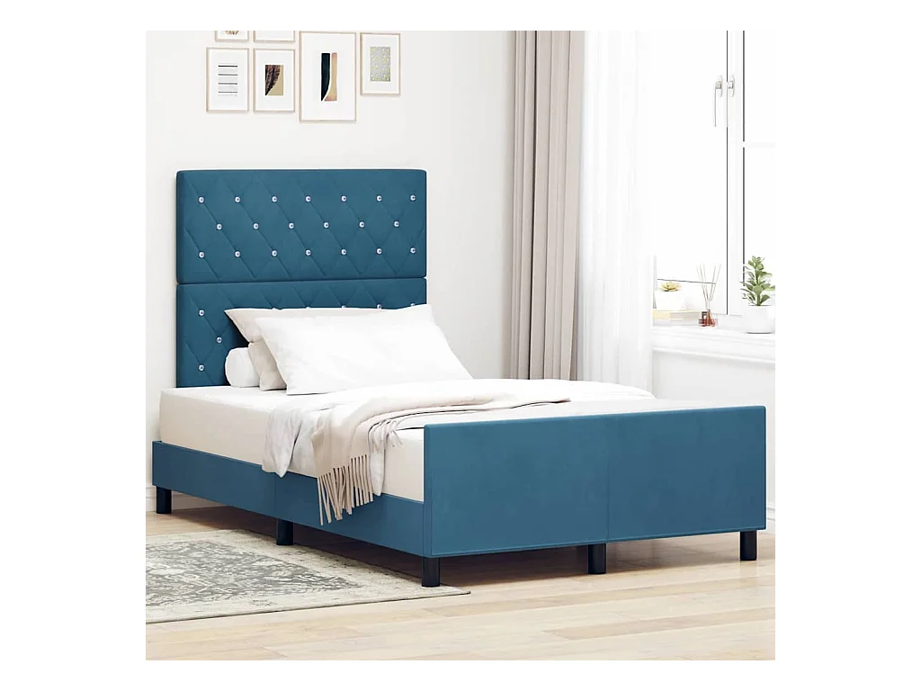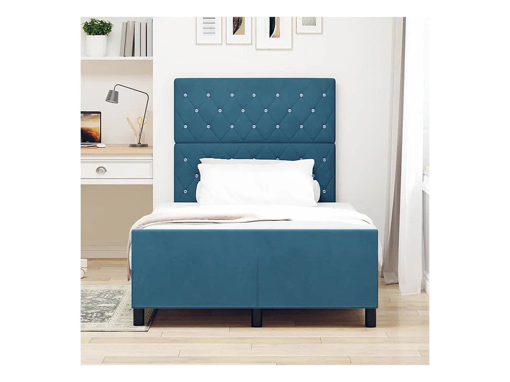 Cadre de lit Bleu 120 x 200 cm Tissu en velours côtelé