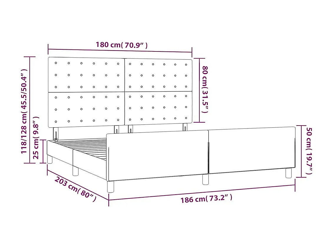 Cadre de lit sans matelas bleu foncé velours