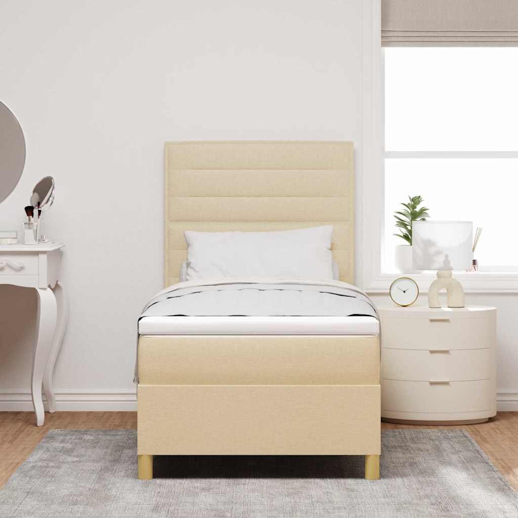 Cadre de lit avec matelas Crème 100 x 200 cm tissu