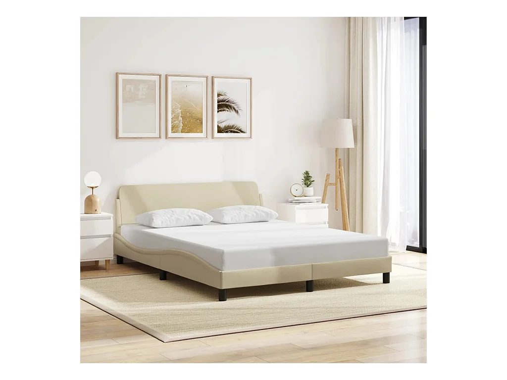 Cadre de lit sans matelas crème 160x200 cm tissu