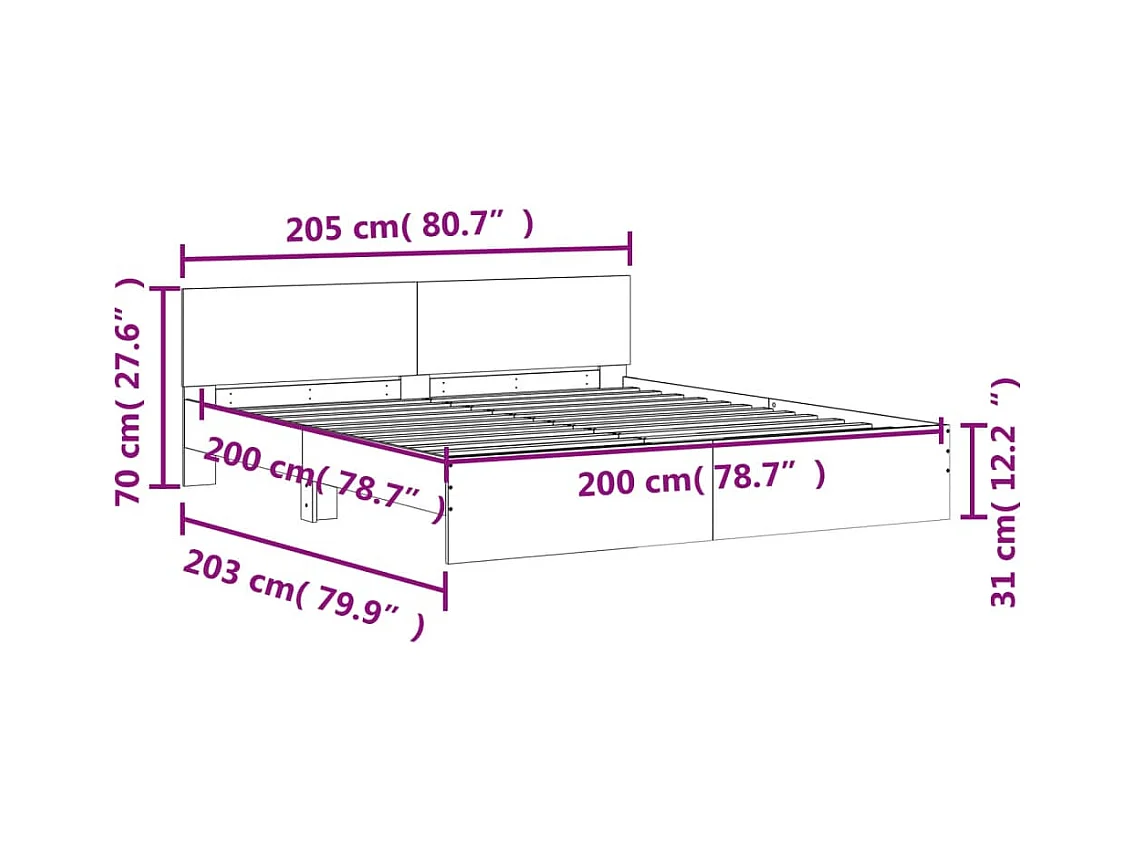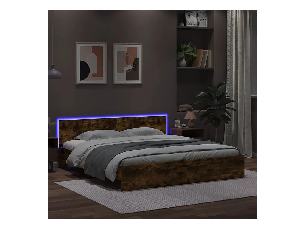 Cadre de lit avec LED sans matelas chêne fumé 200x200 cm