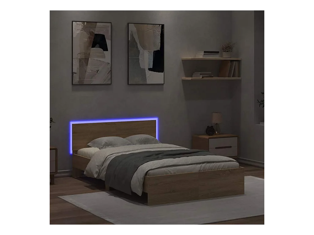 Cadre de lit avec tête de lit et LED chêne sonoma 140x190 cm
