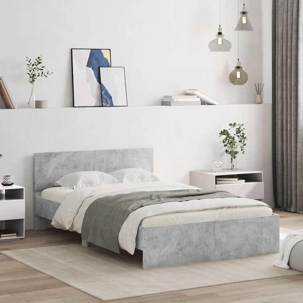 Cadre de lit avec tête de lit et LED gris béton 140x190 cm