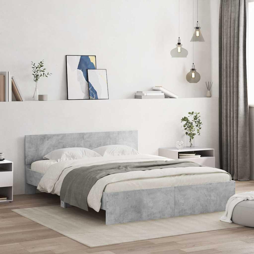Cadre de lit avec tête de lit et LED gris béton 150x200 cm