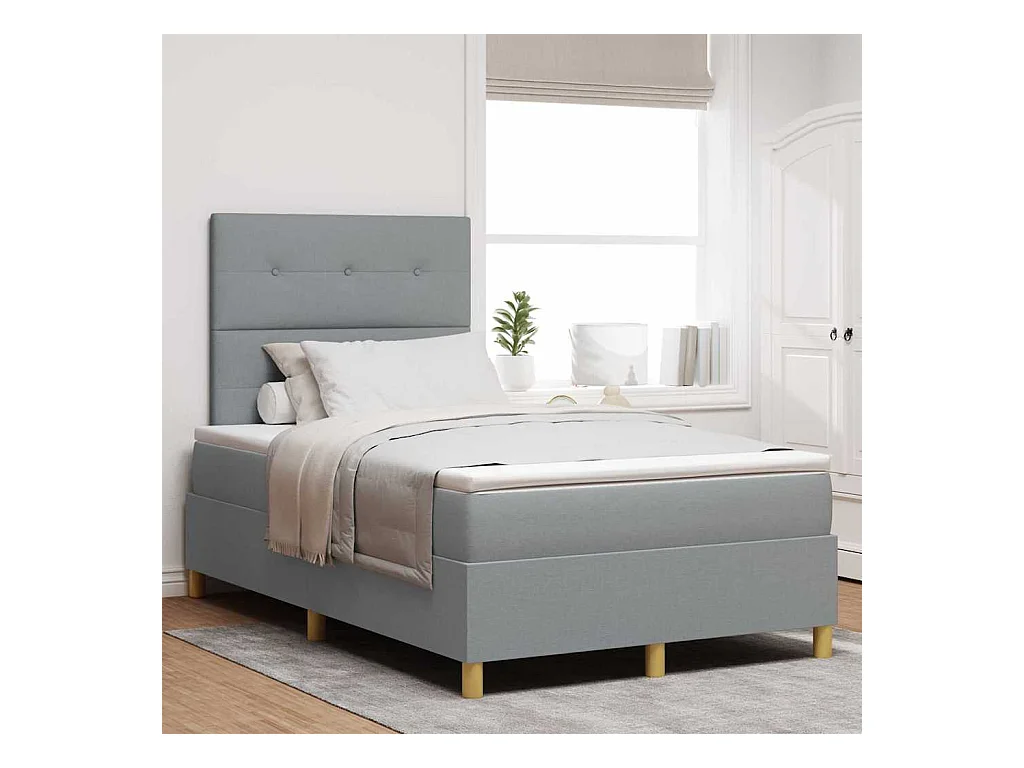 Cadre de lit avec matelas Gris clair 120 x 200 cm tissu