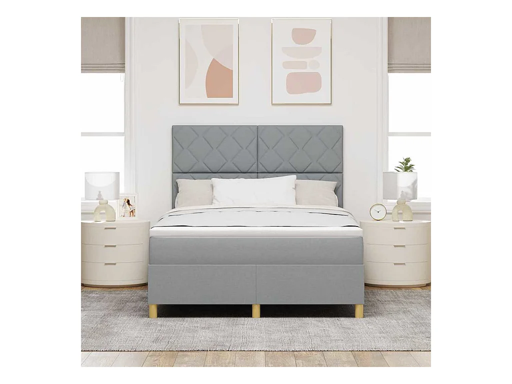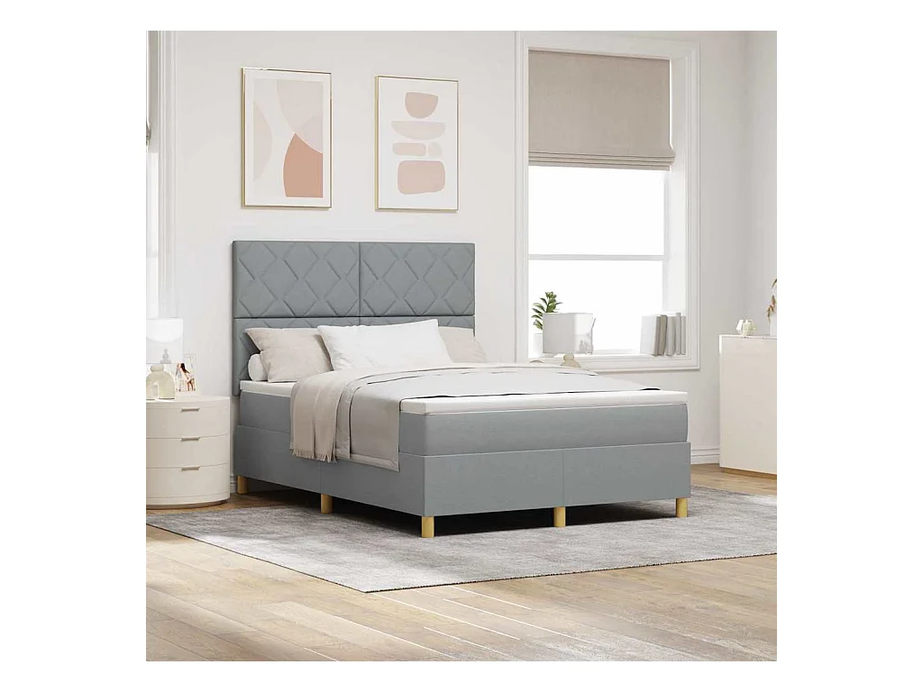 Cadre de lit avec matelas Gris clair 140 x 200 cm tissu