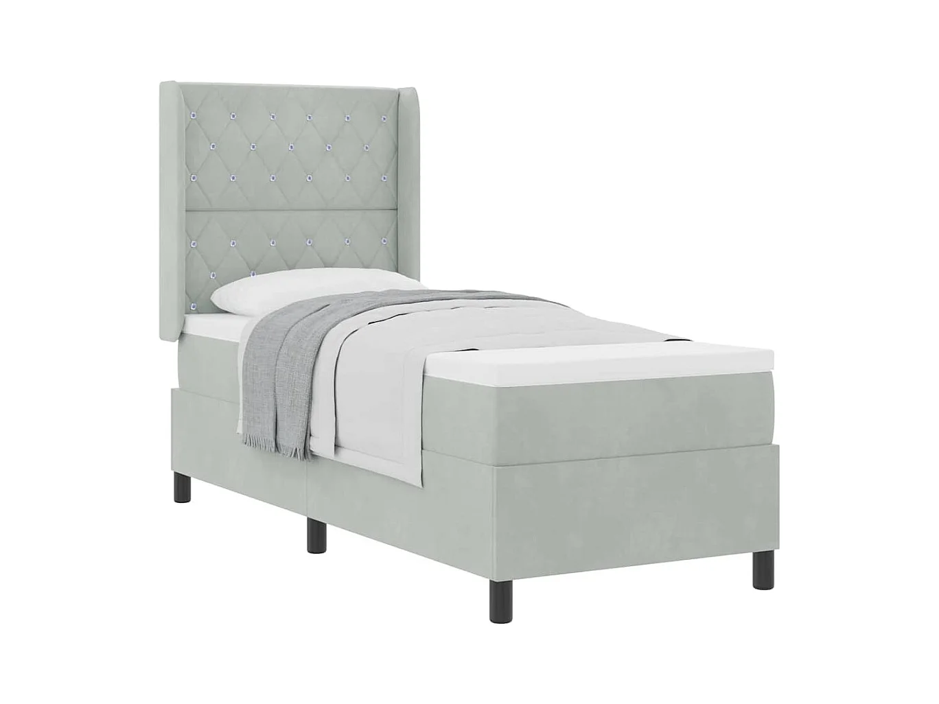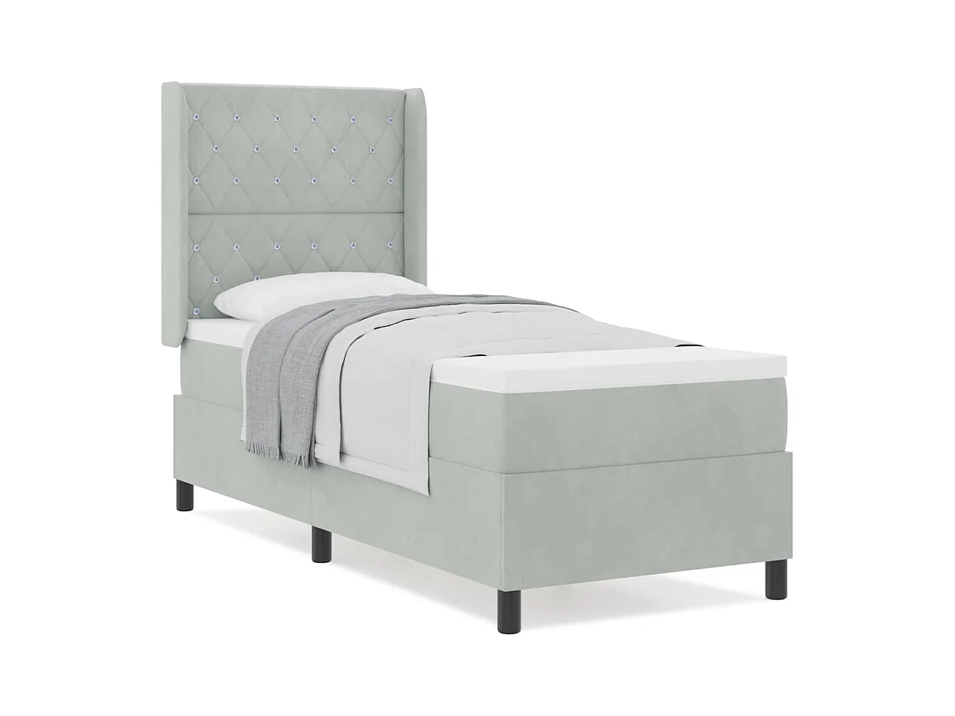 Cadre de lit avec matelas Gris clair 80 x 200 cm Velours