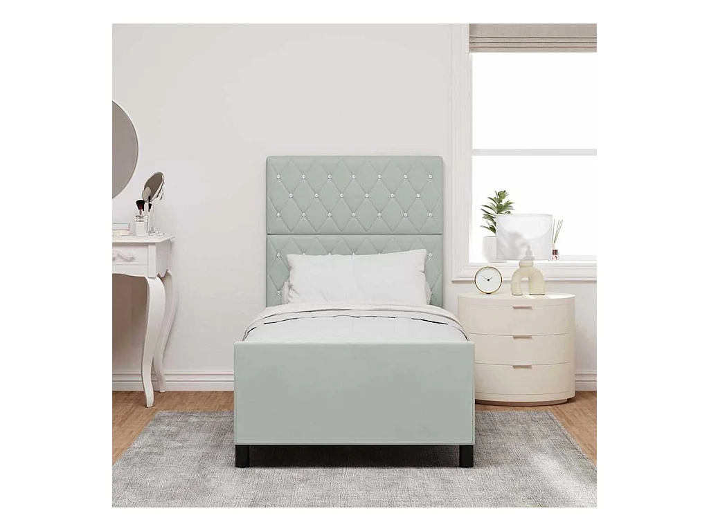 Cadre de lit avec tête de lit Gris clair 90 x 190 cm Velours