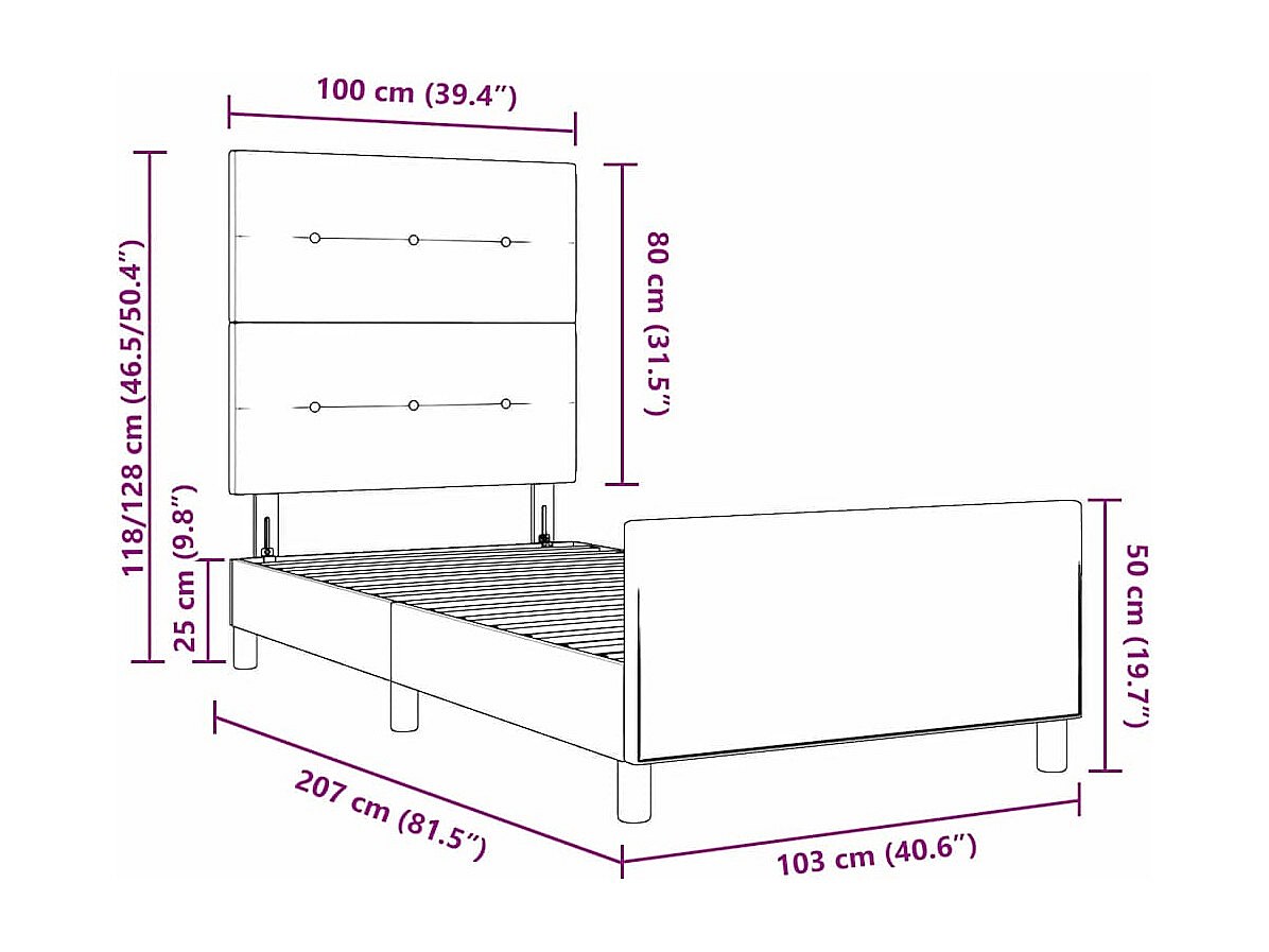 Cadre de lit Gris foncé 100 x 200 cm Tissu en velours côtelé