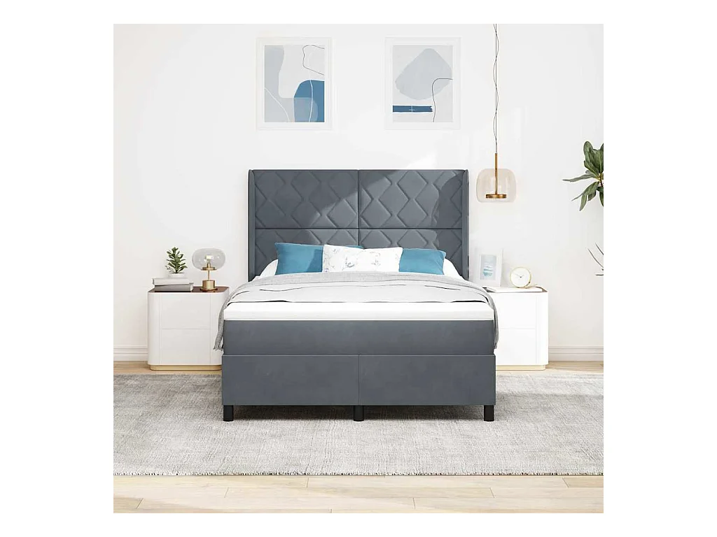 Cadre de lit avec matelas Gris foncé 140 x 200 cm Velours