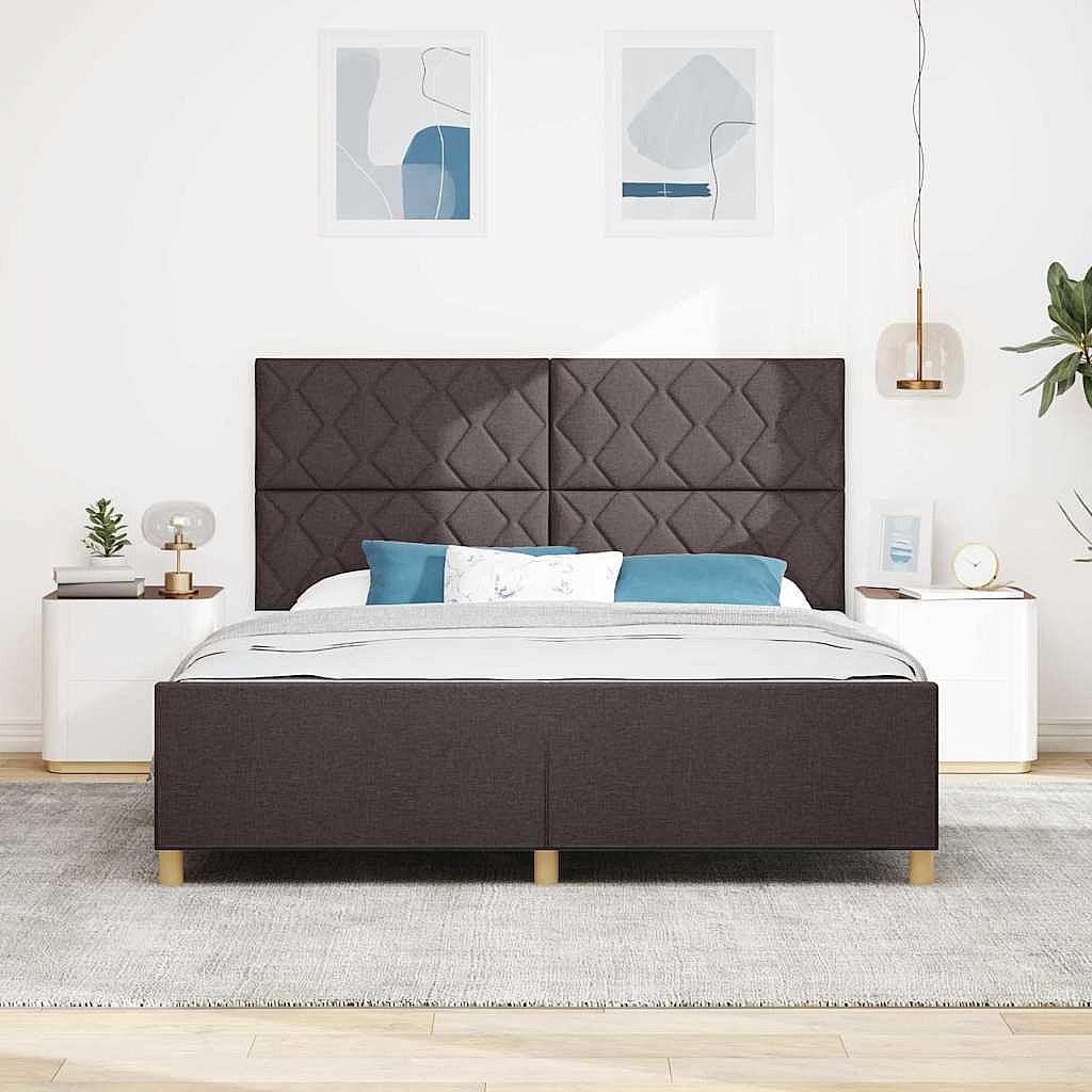 Cadre de lit avec tête de lit Marron foncé 180 x 200 cm tissu